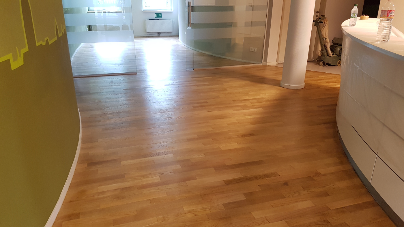 Medicum Bremen Eiche Zweischichtparkett geschliffen und lackiert vorher/nachher, Bremen